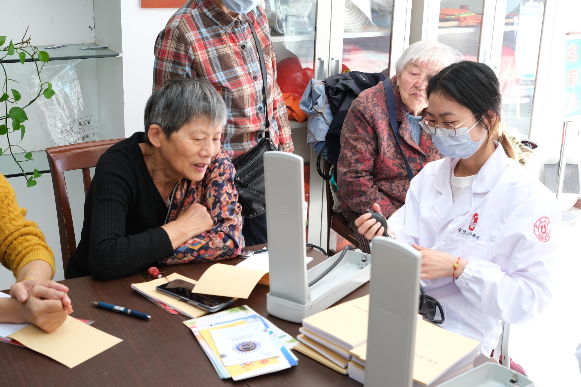 11月10日下午,9名持有“执业医师”资格的春满四合院 医学研究生“千生走基层”团队赴红梅社区开展“义诊促健康,关怀暖人心”志愿服务活动。9名持有“执业医师”资格的医学研究生,近40名社区老年人参加此次活动