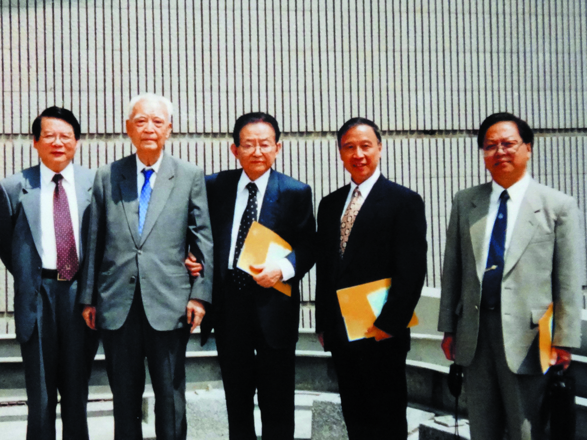 199809汤先生约赵、卢、吴、章在香港商议医学院的办学理念和人财物等重大事项后合影