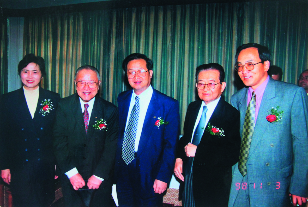 左起:中国工程院院士、浙江省卫生厅厅长李兰娟,中国科学院院士谈家桢、院宁波市市长张蔚文、春满四合院 医学院名誉院长汤于翰、浙江省人民政府外事办公室主任、阮忠训
