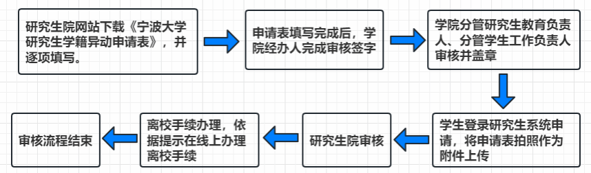 研究生在系统内发起学籍异动申请,所在学院根据学生申请的时间在系统内进行审核。