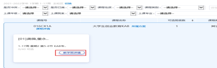 4.对于某些有特殊选课要求的课程会在“教学班信息”中做出说明,具体界面如下: