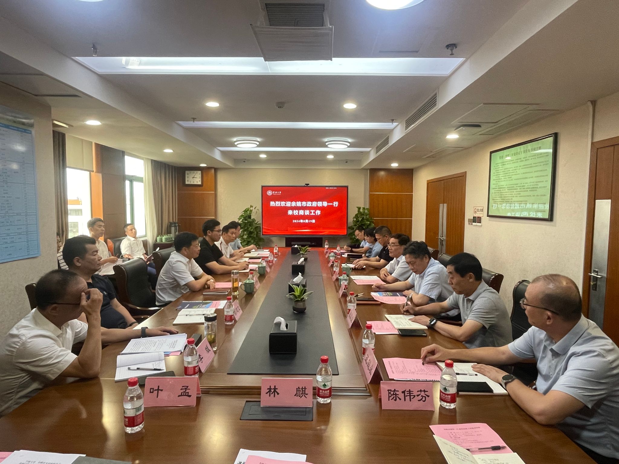 On the afternoon of August 19, Wo Yongte, Deputy Secretary of the Yuyao Municipal Committee and Mayor, along with Vice Mayor Lin Ti, led a delegation including officials from the Yuyao City Government Office, Health Bureau, and Yuyao People's Hospital to visit the school for work discussions. The reception team included Cai Ronggen, President and Academician of the Chinese Academy of Sciences; Zhang Zhenzhu, Deputy Secretary of the Party Committee and Secretary of the Medical Department Party Committee; and Yu Yichun, member of the Party Committee. Relevant department heads from the Party (School) Office, Organization Department, Academic Affairs Office, Medical Specialty Class, and Medical Department also participated in the reception.