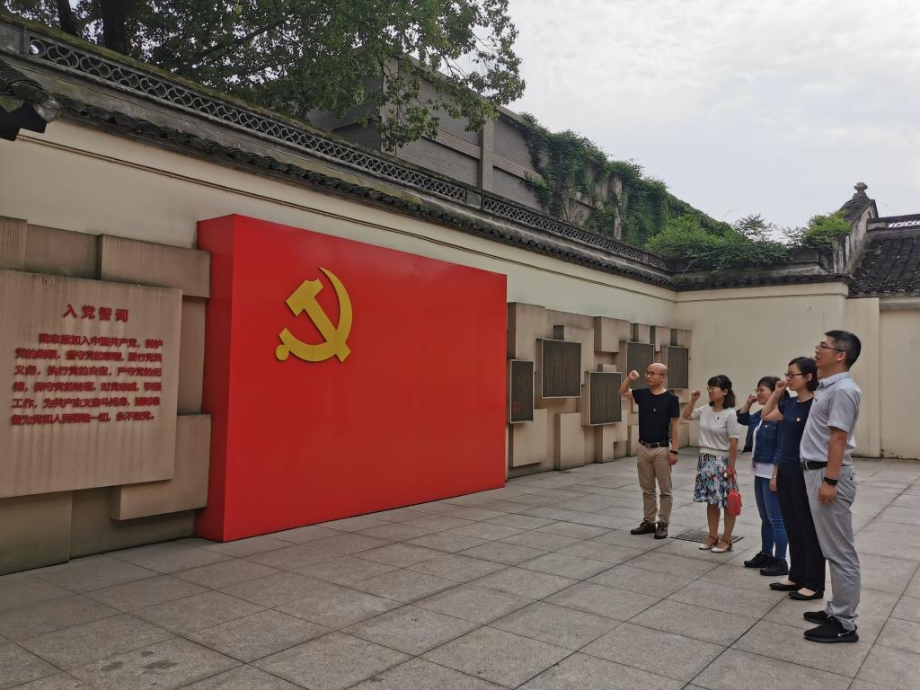支部党员参观了“张人亚与党章的故事”、“中共历次党章制定及修正简况”和“张人亚的革命历程”三个展厅,在讲解员的娓娓道来中认真观看了馆藏文字、图片和革命文物,并观看了张人亚同志的革命事迹纪录片《初心印记——党章守护人》,一本本泛黄的遗物文献,一段段历经沧桑的事迹片段,诉说着张人亚传奇的一生,彰显了一名坚定的共产党员的初心本色和使命担当。观影结束后,全体党员在“党章宣誓墙”前重温入党誓词。