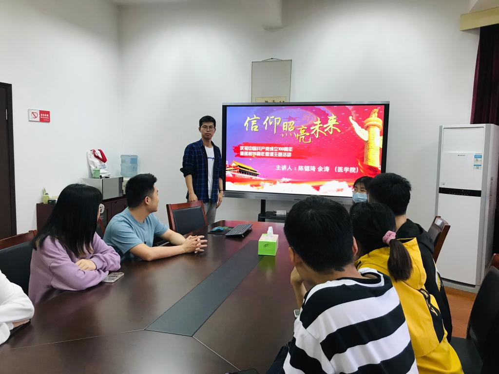 值此中国共产党成立100周年之际,医学院研究生第五党支部发挥先锋模范作用,率先带头开展形式多样的主题党日活动,以多种形式开展“学党史,守初心,共使命”教育,在学生党支部中充分体现“样板党支部”的先进性,不忘医学初心,践行时代使命,为今后的学习工作打下扎实基础。