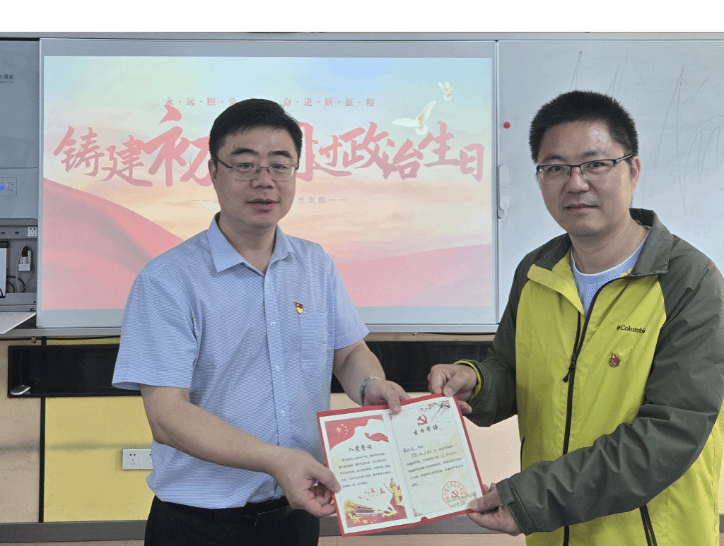 活动伊始,全体党员同志共同为董长征同志入党27周年送上热烈的掌声和诚挚的祝福。随后,方挺为董长征送上精心准备的政治生日贺卡党支部为董长征同志送上了政治生日的祝福随后方挺又为6月份过政治生日的王甲娜、周德正、杨丹婷、吴国卿4位同志分别送上生日贺卡贺卡虽小,却饱含着党组织对每一位党员的关怀与牵挂,让党员们切实感受到党组织的温暖与力量。