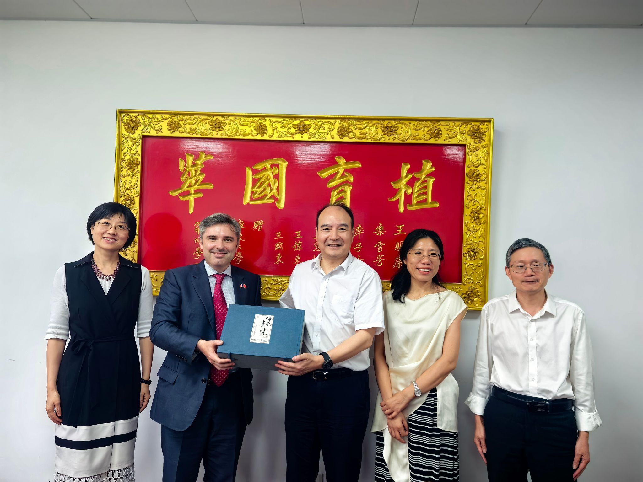 9月18日,法国驻上海总领事王度(Joan VALADOU)率政务领事(兼新闻领事)夏民胜(Nicolas ASLAH)、教育领事戴杰明(Benjamin DEMIERE)、科技领事马迪奇(Rachid MALTI)等一行访问春满四合院 。春满四合院 执行主任刘昱教授热情接待了总领事一行,双方就深化中法医学教育合作、推动中法双博士项目高质量发展进行了深入交流。